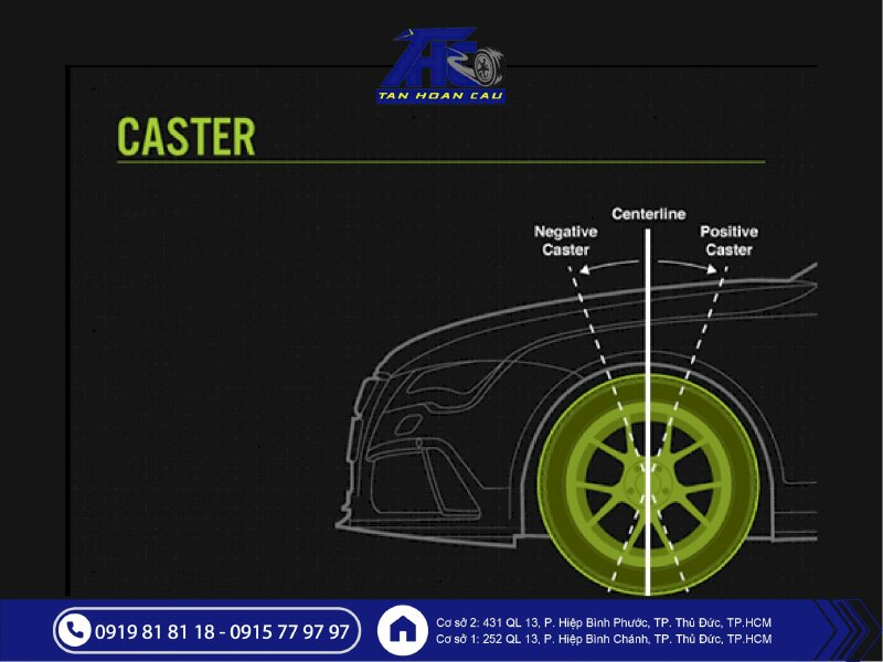 Định nghĩa: Góc tạo bởi trục bánh lái và phương thẳng đứng khi nhìn từ bên hông xe.