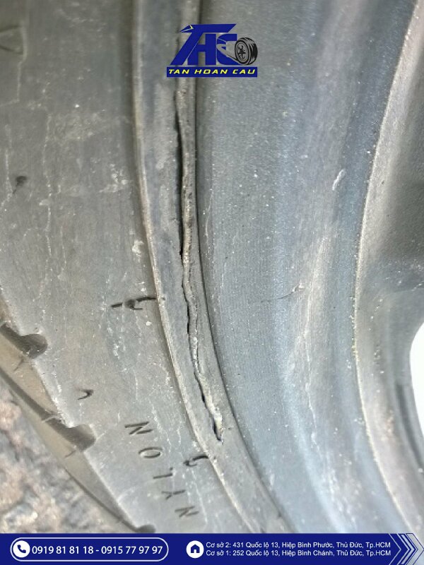 Nứt ở hông và thành lốp: Các vết nứt ở hông và thành lốp là rất nguy hiểm, vì đây là những vị trí chịu áp lực lớn khi xe di chuyển. Việc sửa chữa không thể đảm bảo độ bền và an toàn, do đó bạn nên thay mới lốp ngay lập tức.