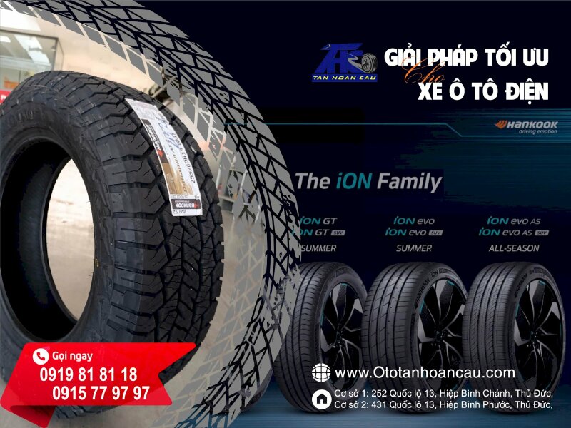 Tân Hoàn Cầu đại lý lốp Hankook ion dành cho xe ô tô điện chính hãng tại TPHCM