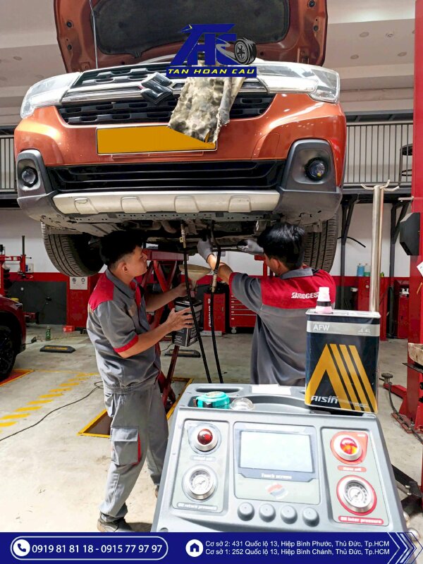 Tại Ô Tô Tân Hoàn Cầu, Chúng tôi đầu tư hệ thống máy chuyên dụng thay dầu hộp số tuần hoàn hiện đại, kết hợp cùng dầu hộp số Aisin chính hãng.